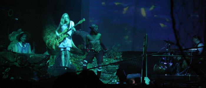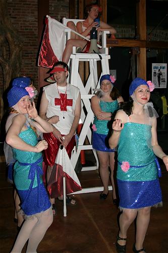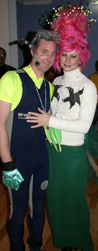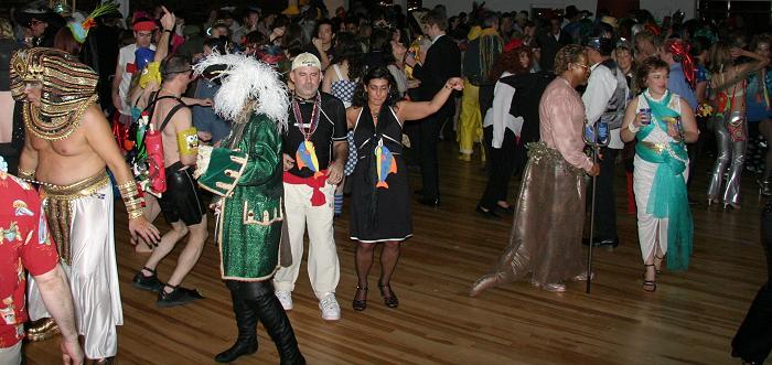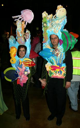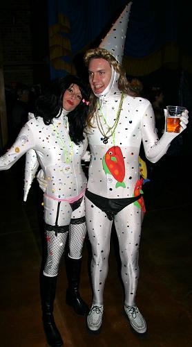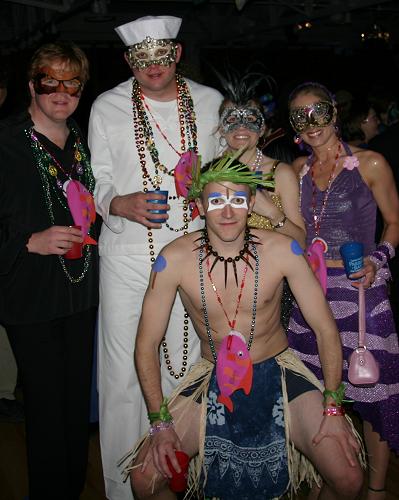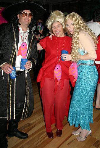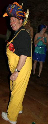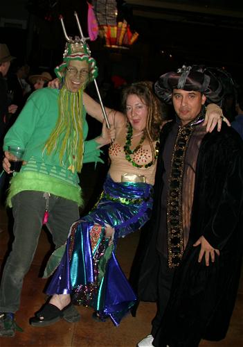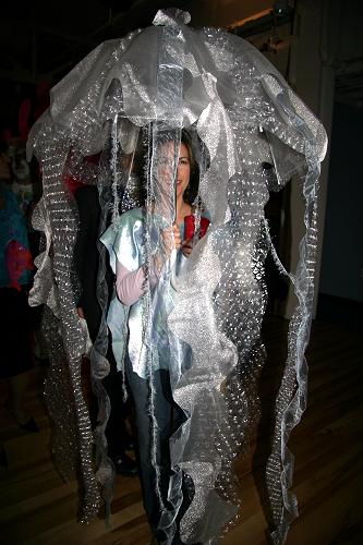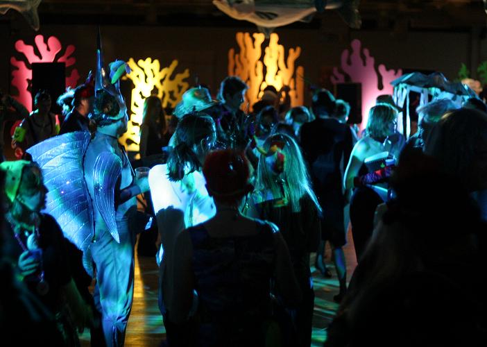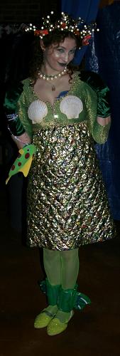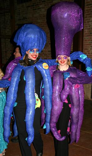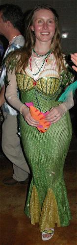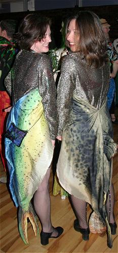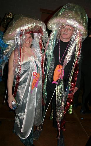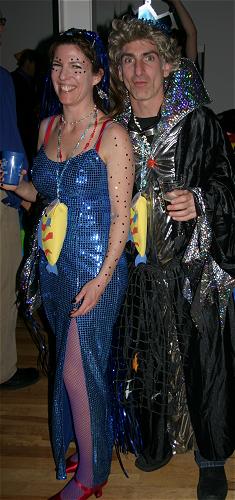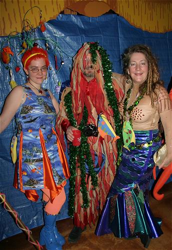 Every year, Baltimore's American Visionary Art Museum hosts Mondo Exotica, the most festive fancy dress ball in the land. In 2005, the theme was Aquarama, and colorful sea creatures danced through the night. While some mundanes arrived with just a captain's hat, most folks did much better. The best costumes were hand-made, and not the slightest bit ordinary. For this event, fish-shaped throw pillows were transformed into evening gowns, bubble wrap became jellyfish, mono-finned mermaids avoided the stairs, spraypaint adorned many a body, and creativity reigned. All of these photos were taken by Tom Jones. If you were there and would like a print, let me know.